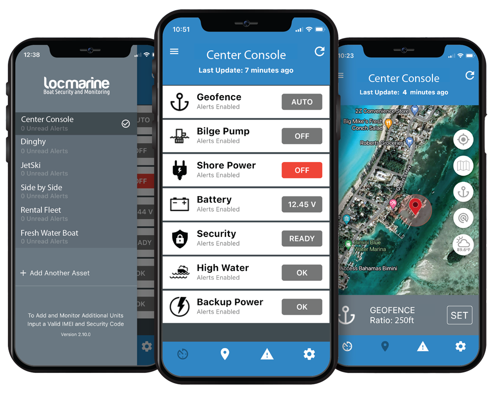 With LocMarine, you can easily keep an eye on your boat from any location and at any time. Get vital real-time data on unauthorized use, console tampering, battery voltage, bilge pump activity, location, high water alarms, and shore power. From a single boat to a commercial fleet, we've got you covered with worldwide coverage.